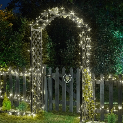 Add sparkle to your garden & outdoor spaces with enchanting fairy lights that shine in two cool modes. Choose from static or flash, & these warm white LEDs will add a touch of magic to your space, making every night feel special. With 200 LEDs providing 21.9m of illumination, these LED fairy lights create a dazzling cluster effect, & solar powered, they require no wiring, simply place & enjoy as they switch on automatically night after night. 200 LED fairy lights Warm white Static & flash modes Solar powered; sense darkness to automatically switch on at night Green cable Total length: 22.1m Length of illumination: 21.9m Space between LEDs: 10cm