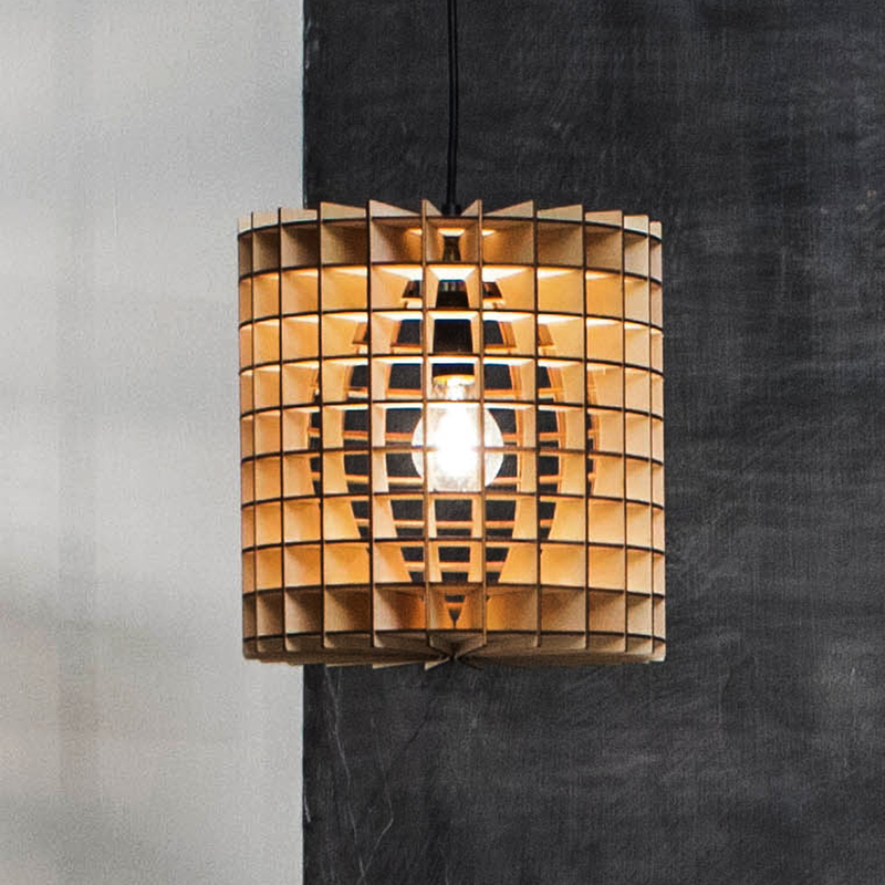 The Cryptex is a sculptural & adaptable light crafted from beech wood. Encased within the waffle-like wooden frame is an exposed light bulb, the glow from which casts linear shadows all around the light to create a soothing effect from a light feature that is unique & innovative. The cylindrical structure can be stood on the floor or used as a table lamp, & can also be hung as a pendant light. A statement piece that will lift any room in the home.