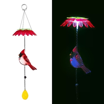 A bright & vibrant decoration for your garden, a red cardinal bird with a pearlescent belly hangs from a red flower that's lit with colour change LEDs to make a stunning solar powered garden mobile. Add a splash of colour & light to trees, trellises, bushes & more with this charming solar mobile & see it shine with colour change light illuminating the cardinal bird & a decadent glass leaf at the base. Allow the mobile to charge through out the day & it will detect darkness to automatically switch on at night shining with relaxing colour change light night after night. Solar cardinal bird mobile 3 x colour change LEDs Plastic & metal construction Vibrant red cardinal bird Red flower Size of complete mobile: 63cm (H) x 13cm diameter Size of cardinal: 15cm (H) x 14.5cm (W)